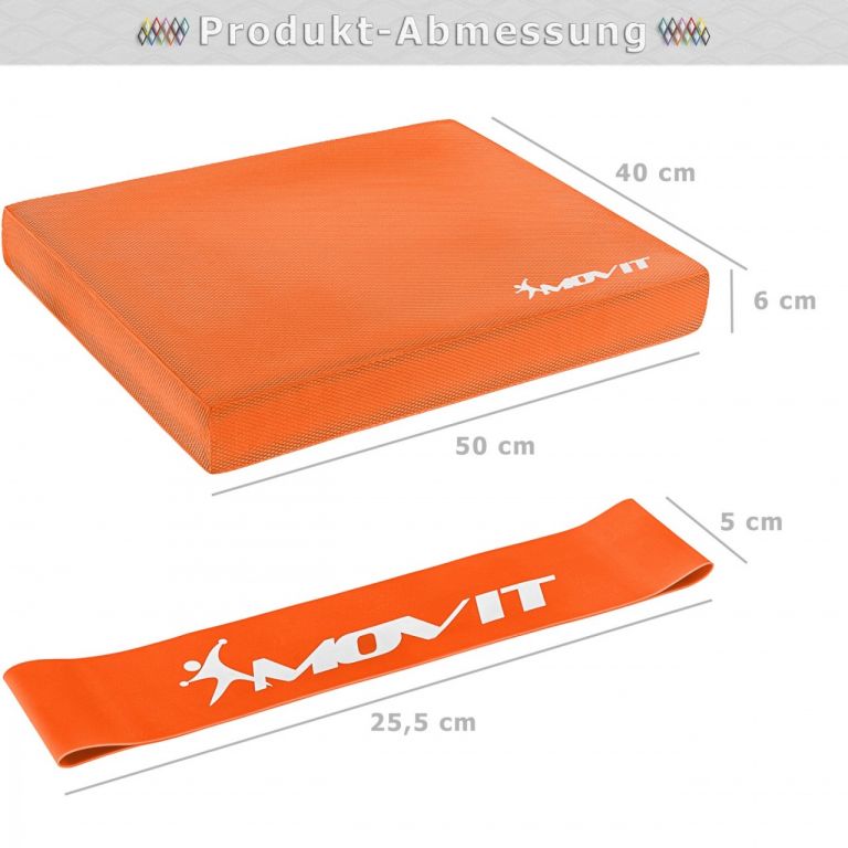 Koordinační podložka MOVIT, balanční polštář, vratký polštář pro koordinaci a posilování, který je šetrný ke kloubům. Měkká, nestabilní základna je vyrobena z pěny a při působení tlaku se podá. To klade nároky na celé tělo, např. s nohama na podložce musí celé tělo neustále vyrovnávat nestabilní povrch, aby byla dodržena rovnováha. Balanční polštáře se velmi často používají při rehabilitaci k obnově svalů po nehodě nebo operaci. Cvičení na nestabilním povrchu klade nároky na pocit rovnováhy a zlepšuje koordinaci. Díky neustálému balancování jsou využity hluboko uložené svaly, což pomáhá předcházet zraněním při posilování podpůrných svalů. S přiloženou fitness páskou vyrobenou z vysoce kvalitního latexu můžete cvičit mnoho dalších cvičení: pilates, dřepy, výpady, mosty, výkopy atdf. Tím trénujete vaše hýžďové svalstvo, stehna, nohy a břišní svaly způsobem, který je obzvláště šetrný ke kloubům. Silový trénink byl včera – funkční trénink je dnes! Zlepšete svou koordinaci, motoriku, kondici a sílu pomocí této inovativní tréninkové metody. Trénujte celistvé pohyby a dosáhněte hlubokých svalových řetězců pomocí balancování na balanční podložce MOVIT.
